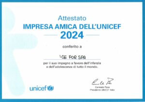 Siamo entusiasti di annunciare che ICEFOR SPA ha deciso di unirsi al programma “Impresa Amica dell’UNICEF”, sostenendo con orgoglio l’operato di UNICEF Italia e il suo impegno a favore dei bambini in tutto il mondo.