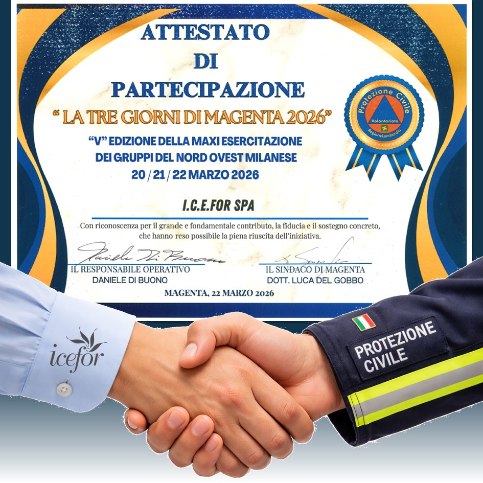 Impegno e collaborazione: ICEFOR SPA sostiene la PROTEZIONE CIVILE per la MAXIESERCITAZIONE “La Tre Giorni di Magenta 2026”